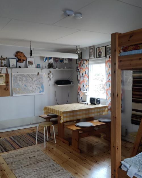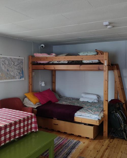 Majalla on patjat, tyynyt ja peitot. Tarvitset mukaan omat lakanat ja tyynynpäälliset. Majan molemmilla puolilla on mikroaaltouuni ja jääkaappi, kahvikeitin sekä vedenkeitin. Järvivesi on puhdasta, mutta suositus on keittää vesi ennen juomista. Monet tuovat juomaveden mukanaan.